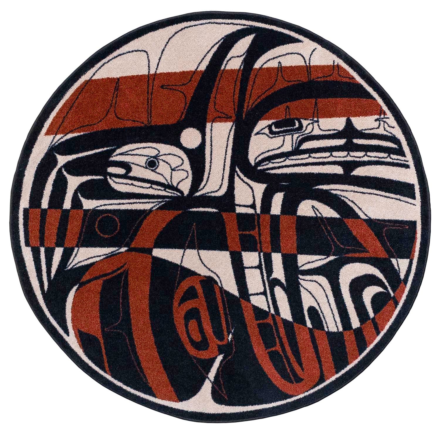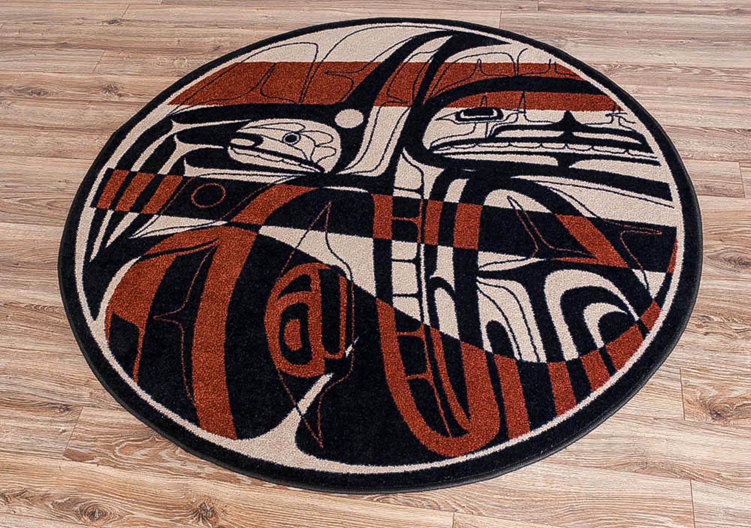 Native artwork from one of Mike Dangeli's drum designs is now available on a durable 6ft rug called “Northern Stripes”. Mike's original design incorporates a modern twist to typical traditional Northwest Coast style.
