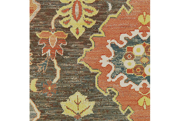 Toscana is a more authentic take on the bohemian trend that focuses on capturing the beauty and charm of vintage carpets through updated traditional styling and unique color combinations. Warm neo-traditional shades of saffron, coral, bright apricot and blood orange are contrasted by smoky teal, ash blue, charcoal and oatmeal shades. Toscana is machine-woven in a high density durable construction of a space-dyed nylon/polypropylene blend of yarns.