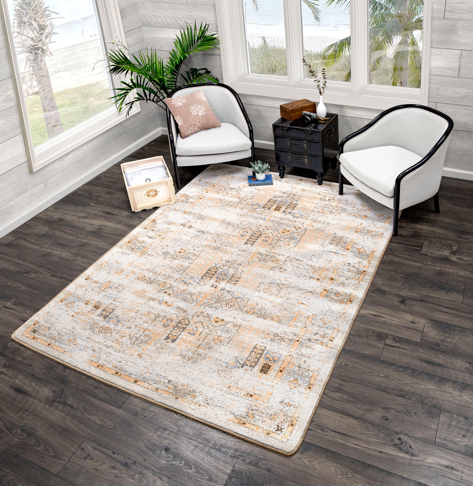 Super subtle details and an overall light distressing make this rug a stunning addition to your home. The Persian design peaks through the design to make it sophisticated, but the airiness of the pattern makes it perfect for a lived-in look.