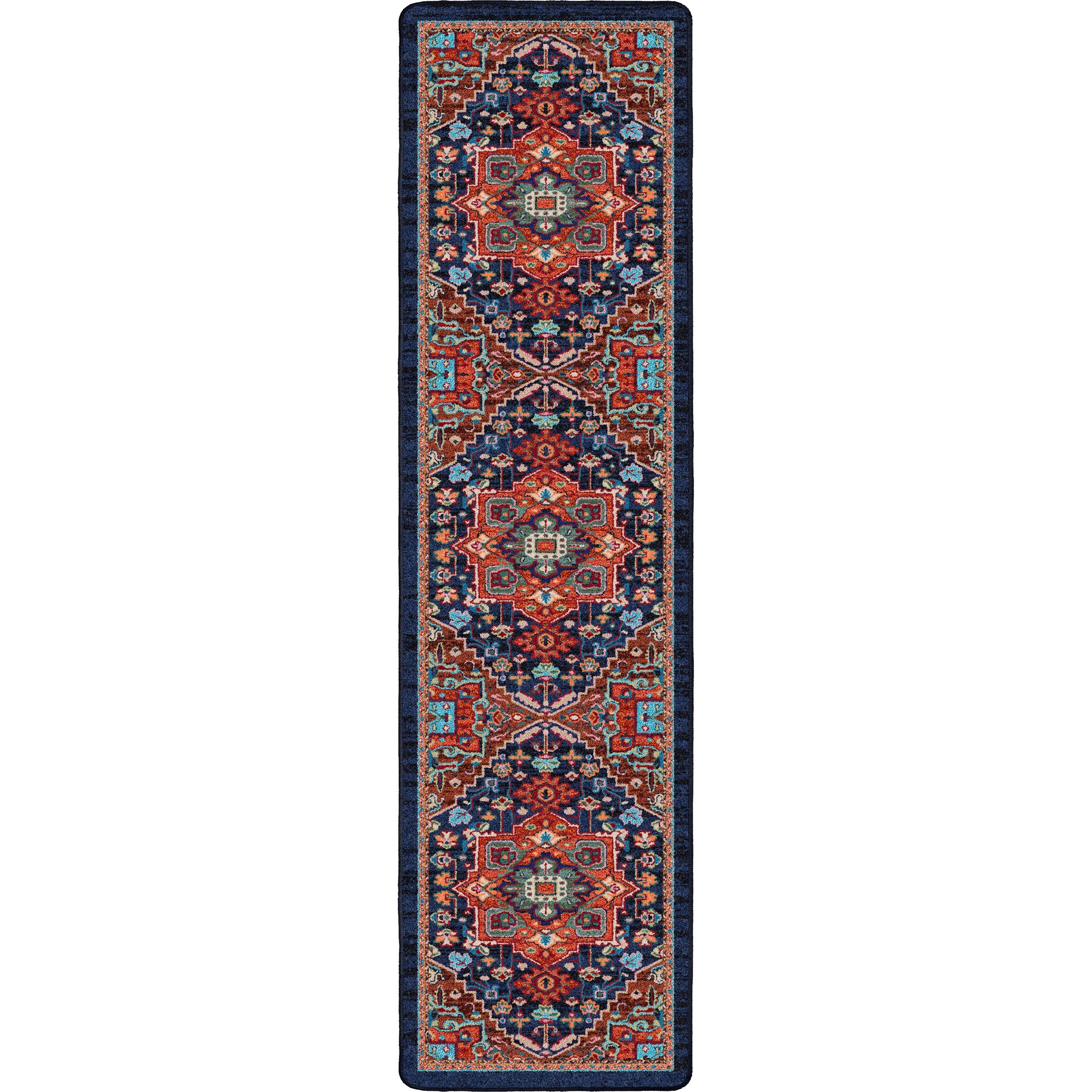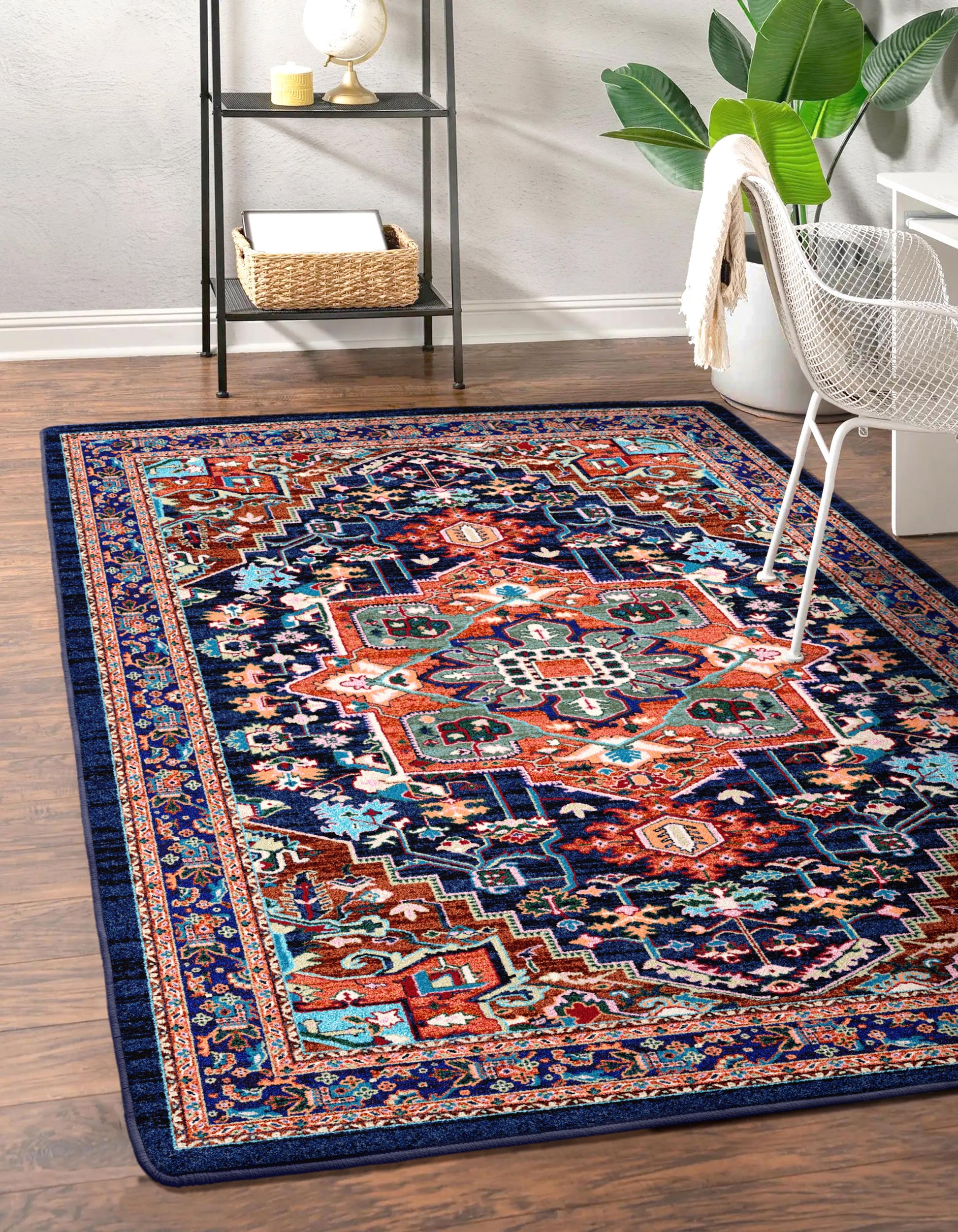 Saturated colors on top of a dark field make this rug strong color choice for your home. Bring in some instant impact into your décor with this updated Persian.