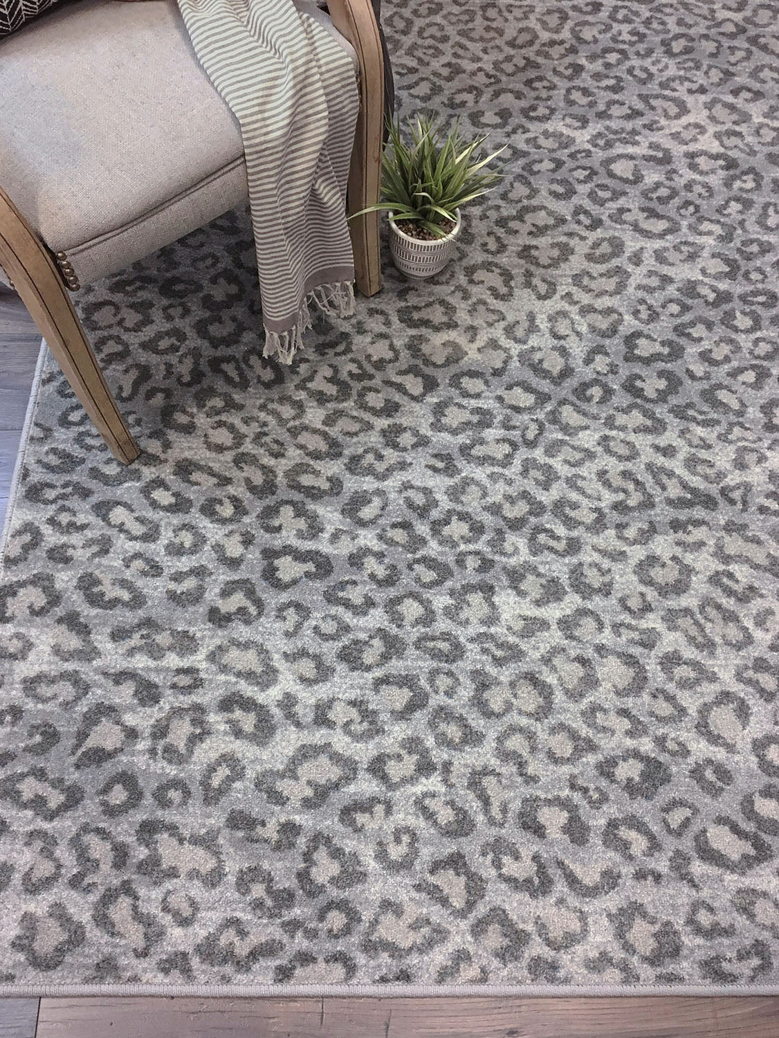 More subtle than the cheetah pattern this Snow leopard print is done in soft grays and charcoal tones.