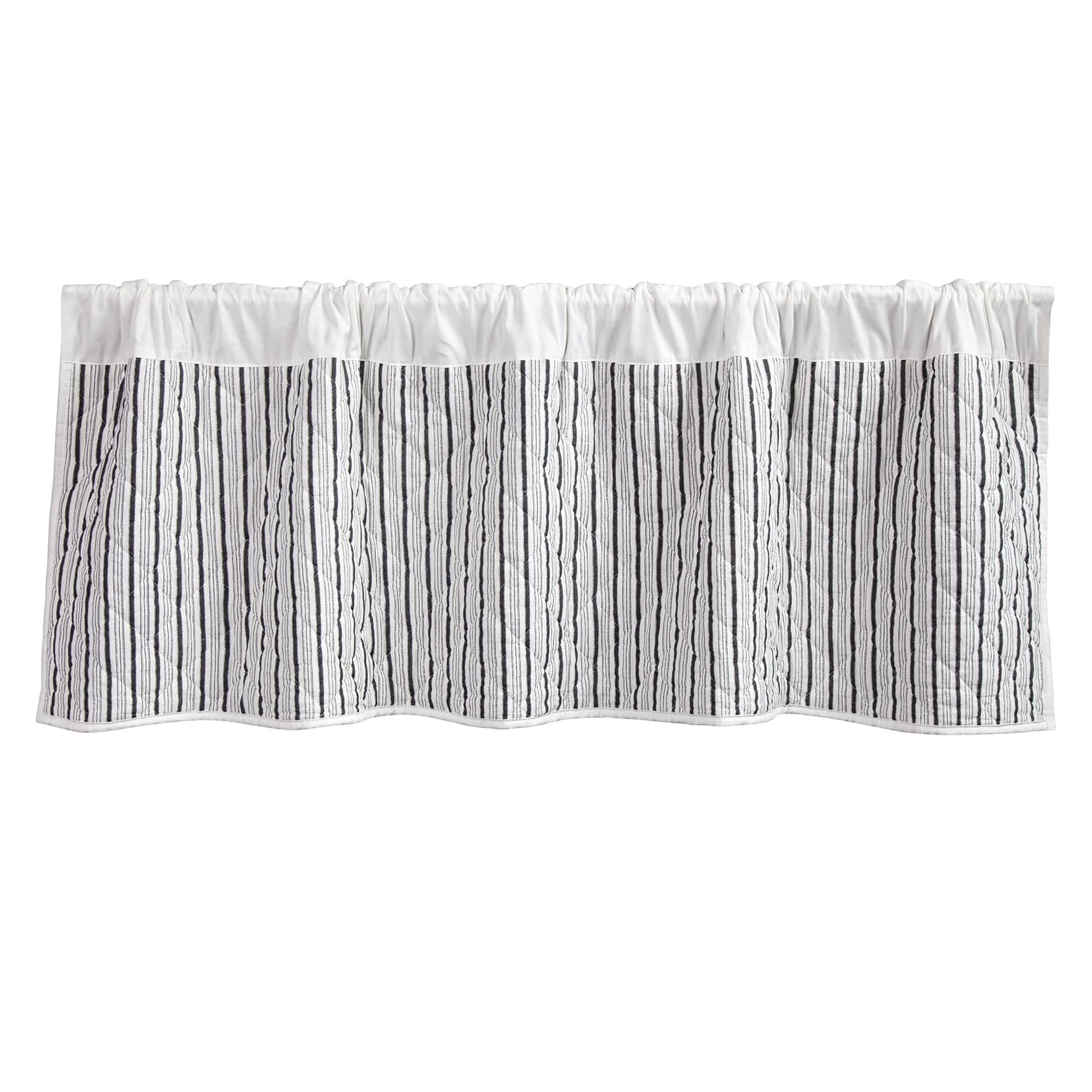 Drape your windows with scenes of wrangling cowboys, grazing cow herds, and frolicking desert wildlife in our Ranch Life Quilted Valance. In a versatile black-and-white colorway, this valance features a playful Western take on traditional Toile de Jouy, which reverses to a ticking stripe backdrop for more styling options. Coordinate with bedding and home decor from our Ranch Life Collection to complete a stylish rustic home ensemble.
