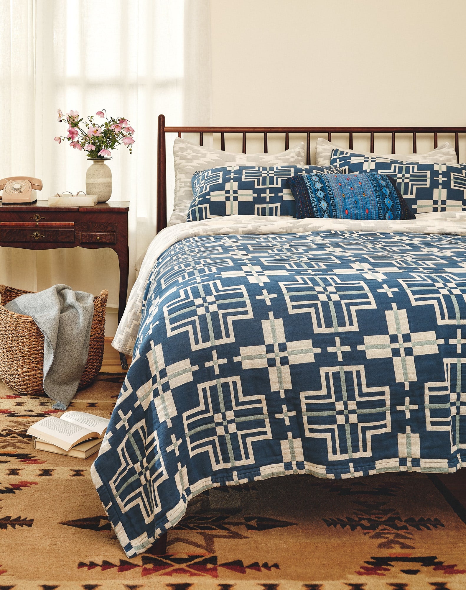 A year‑round essential for your bedroom, this coverlet is crafted from soft, breathable cotton matelassé with a lightweight yet textured weave that evokes antique Appalachian textiles. Woven in Portugal for Pendleton, it brings subtle dimension without bulk and pairs beautifully with coordinating shams or bedding layers for a timeless, heritage‑inspired look.