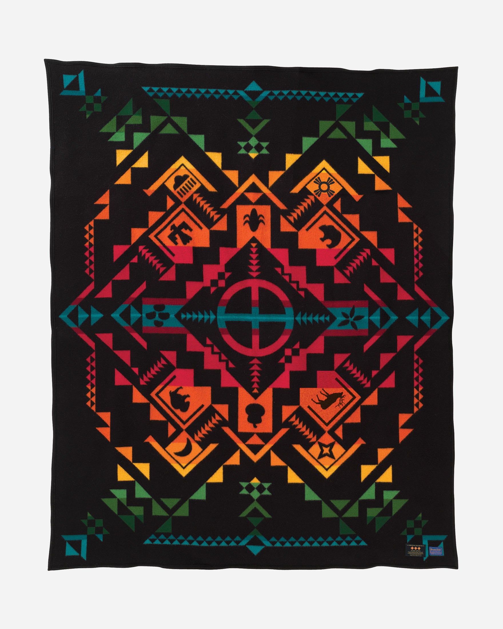 Woven from premium pure wool, this blanket delivers exceptional warmth, softness, and durability while showcasing the iconic jacquard pattern Shared Spirits. This reversible design and quality craftsmanship makes this blanket an heirloom-quality piece made to be enjoyed for years to come.