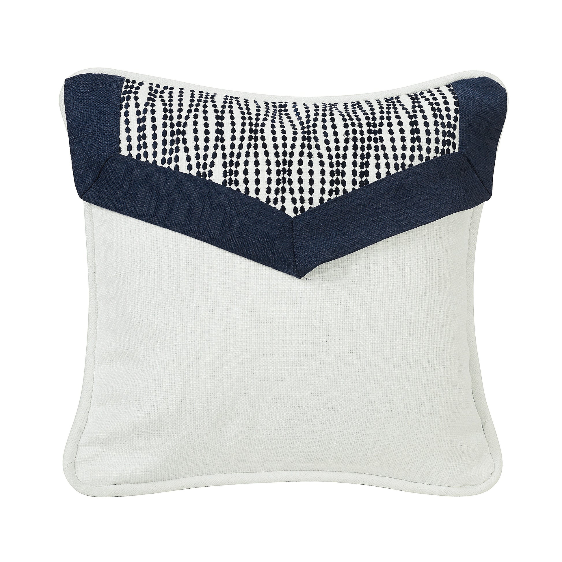 Made with durable white fabric, this sleek decorative pillow has an embroidered envelope accent and white piping detail. Able to coordinate with several collections, this pillow measures 18" X 18". Hidden zipper closure. Spot clean recommended. Shell and Fill: 100% waterfowl feathers. Imported.