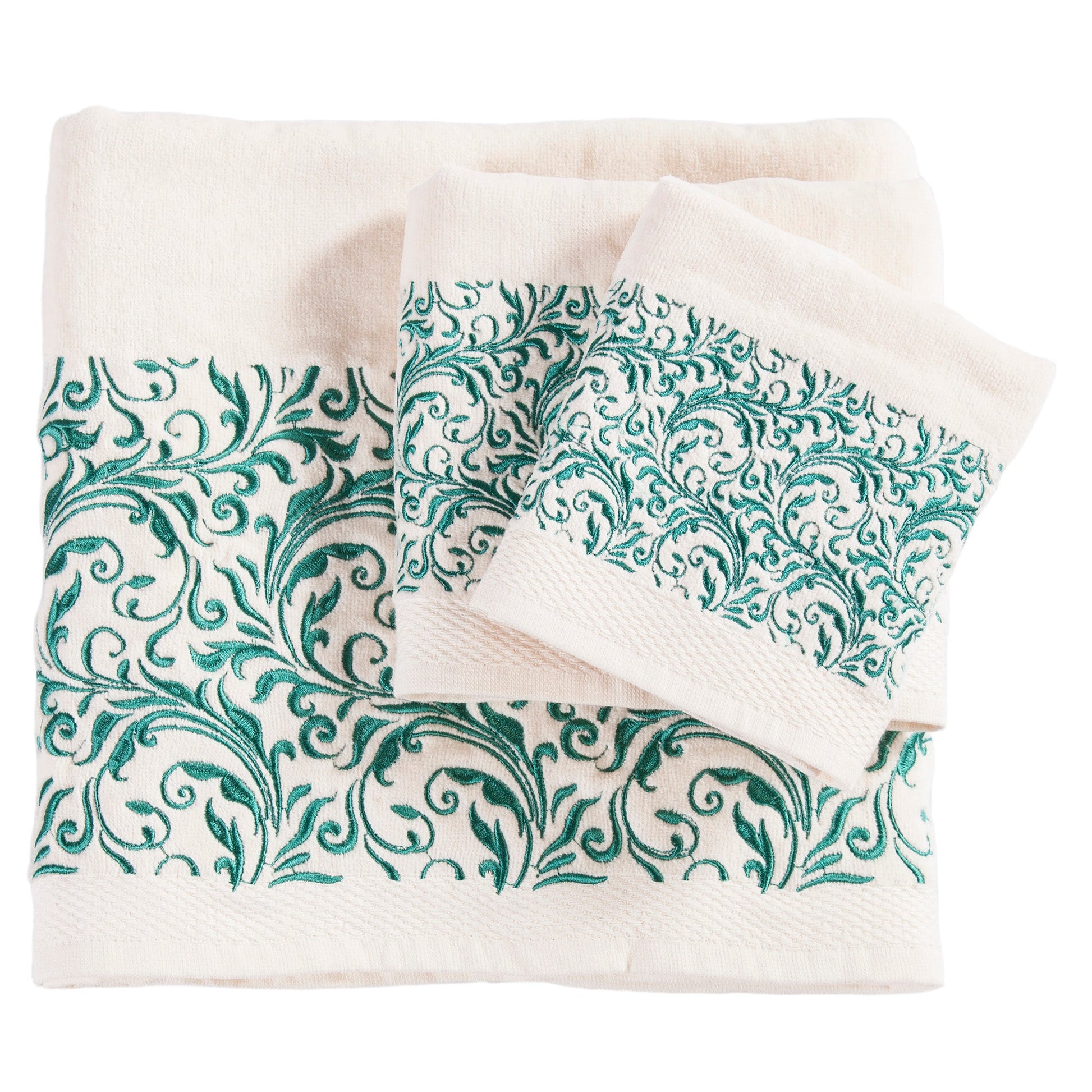 Wyatt Embroidered Turquoise Scroll Pattern Towel Set