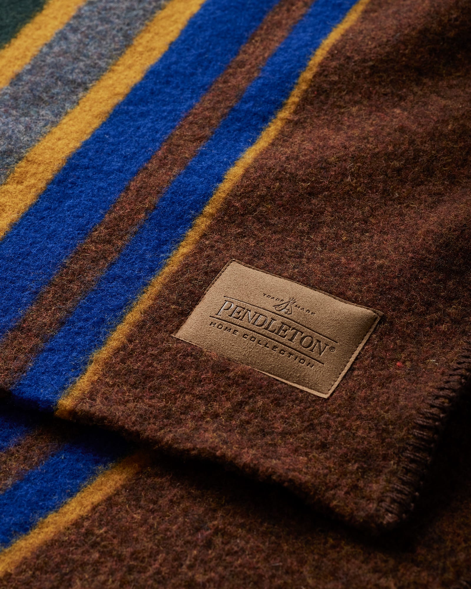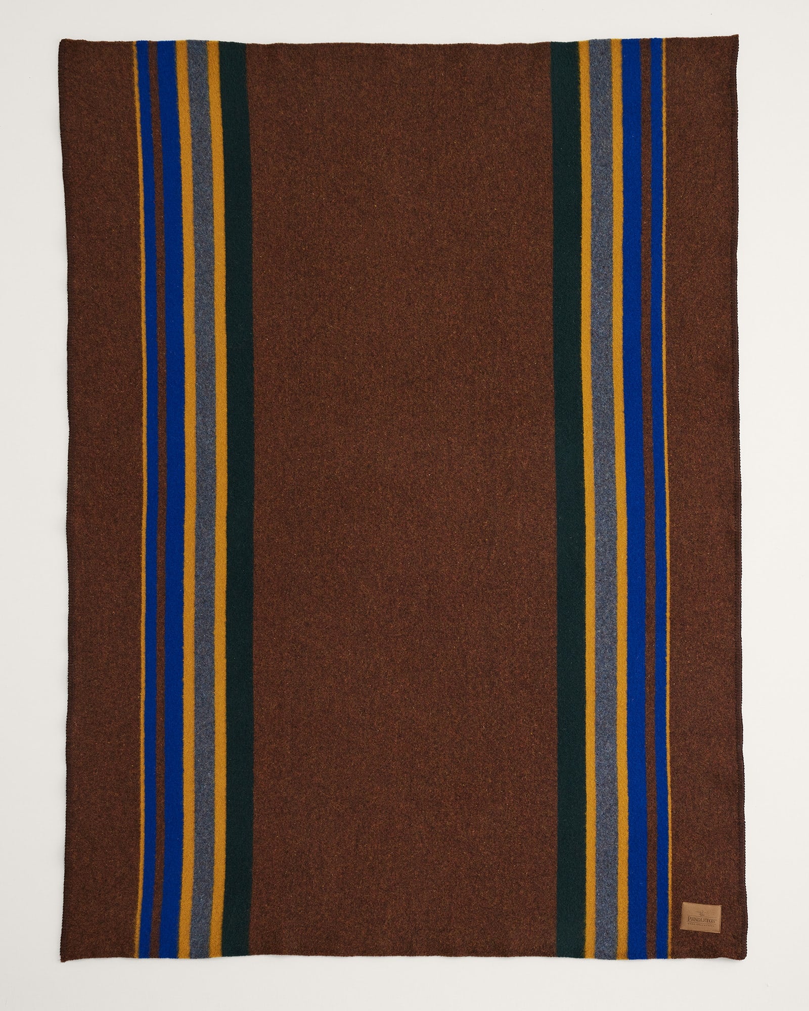 Made-in-America wool camp throw that's one of our most popular. Camp blankets were originally used by shepherds to brave the elements of the Pacific Northwest—right where our rugged wool versions are still woven today. These smaller sized blankets make a great gift for outdoor enthusiasts. Stripes run vertically.