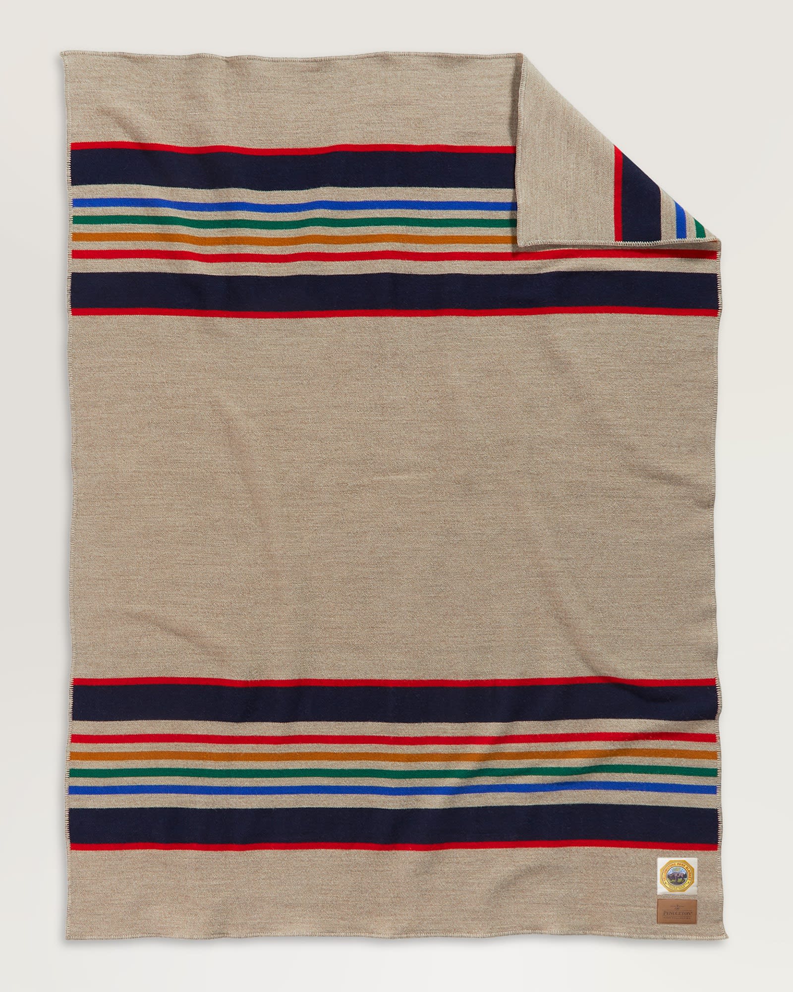 A wool throw featuring our Yellowstone pattern, designed to capture the varied colors and landscapes of our country's oldest national park. Perfectly sized for the back of a couch or foot of bed, it's also a welcome companion for road trips, picnics and outdoor concerts. Includes leather carrier for easy portability.